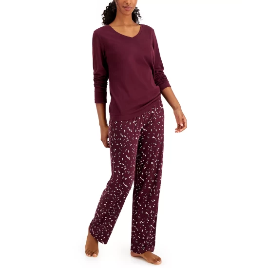 Kick back in all-cotton comfort with this Charter Club pajama set, a long-sleeve T-shirt paired with fun printed bottoms.