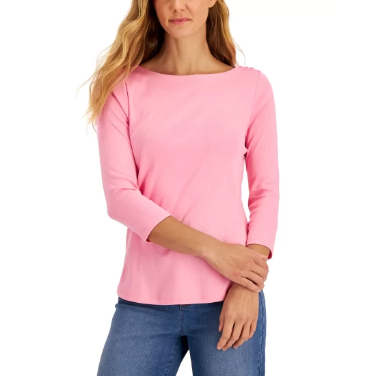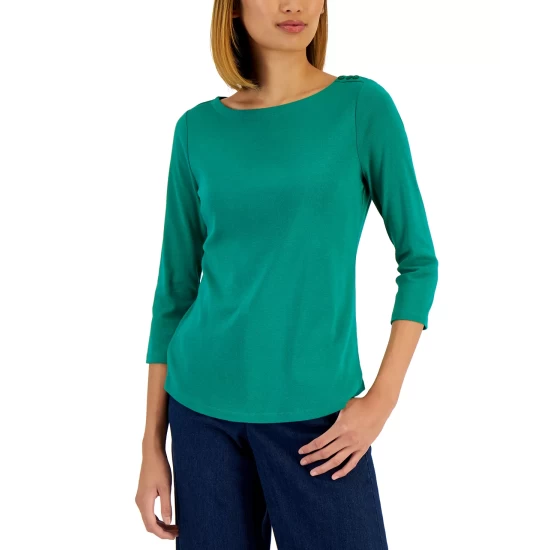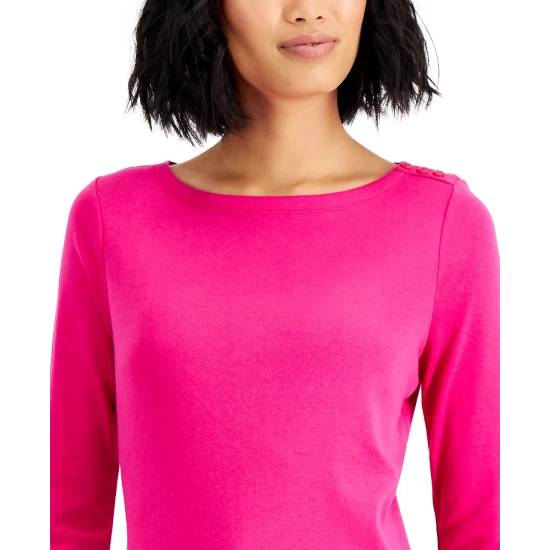 Keep your ensemble simple and sophisticated with Charter Club’s boat-neck top, finished with subtle shoulder buttons.