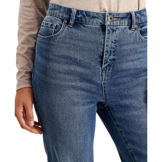 - Mid rise; relaxed fit through hips and thighs; straight leg cropped at mid-calf