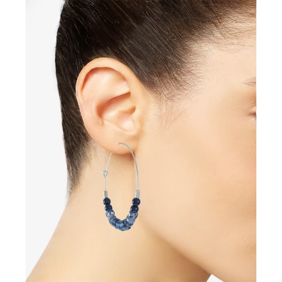 Bring color and cool to an old boring look with these beaded oval hoops designed by Style & Co.