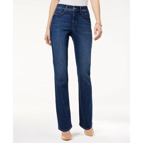 Soft and stretchy, Style & Co’s signature high rise straight-leg jeans conform to your shape with a comfortable curvy fit and a smoothing Secret Slim Pocket Panel.