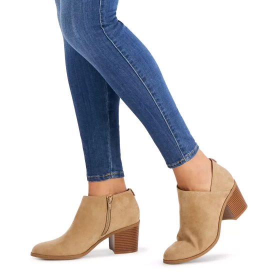 V-notch cutouts bring fashion-forward asymmetry to a stylish lift in the Felaa booties from Style & Co.