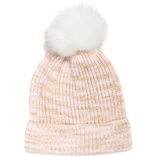 - Style Details: Marled space-dyed; ribbed detail; faux fur pom top detail; cuffed hem
