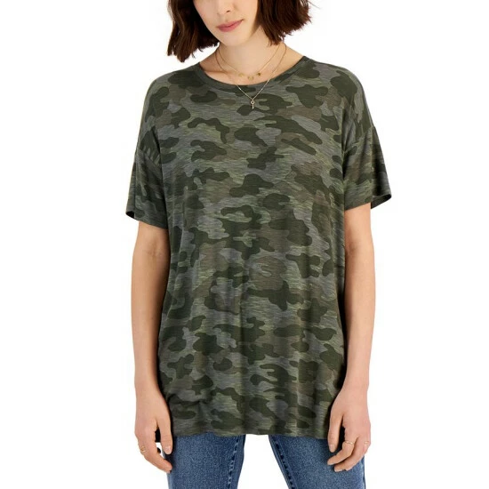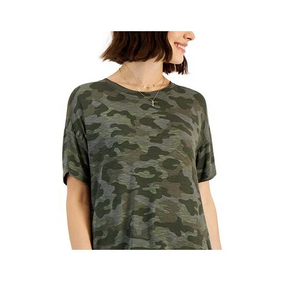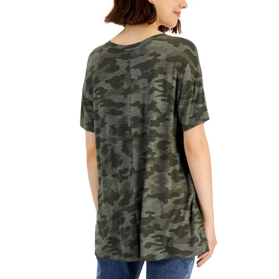 Command their attention in this cool petite T-shirt from Style & Co, a camo-print design with a perfectly-slouchy loose silhouette.