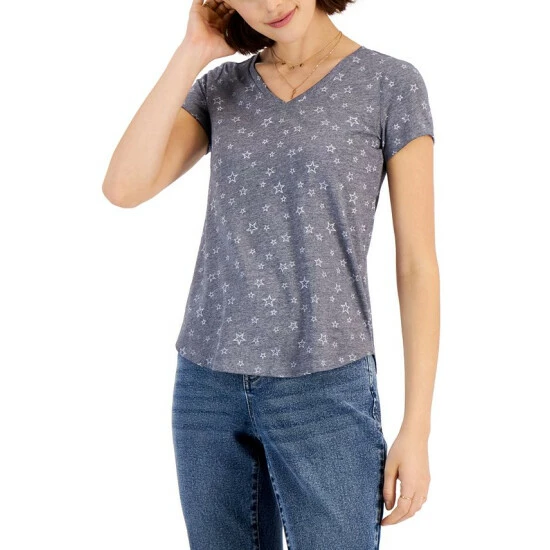 Lightweight burnout star-print fabric takes Style & Co’s petite V-neck T-shirt to the next dimension.