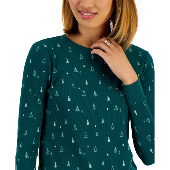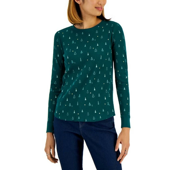Style & Co brings a festive feel to this essential layering top with fun tree prints. Wear it alone or under your favorite cardigan.