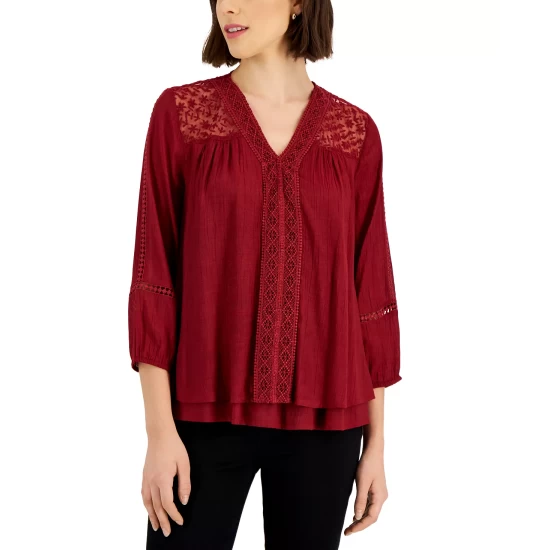 Pretty lace trim updates this effortlessly chic top from Style & Co.