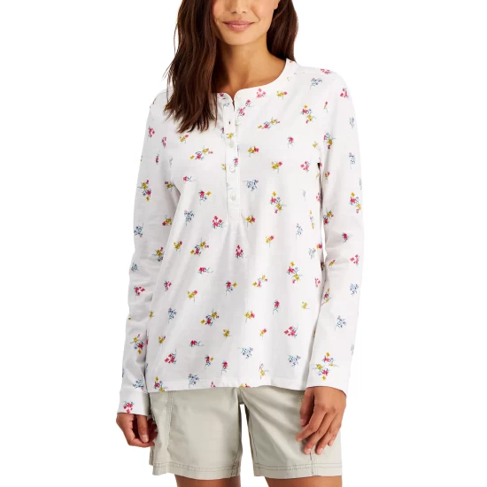 A layering basic, this petite waffle knit top from Style & Co is featured with a split neckline and long sleeves for a sleek finish.