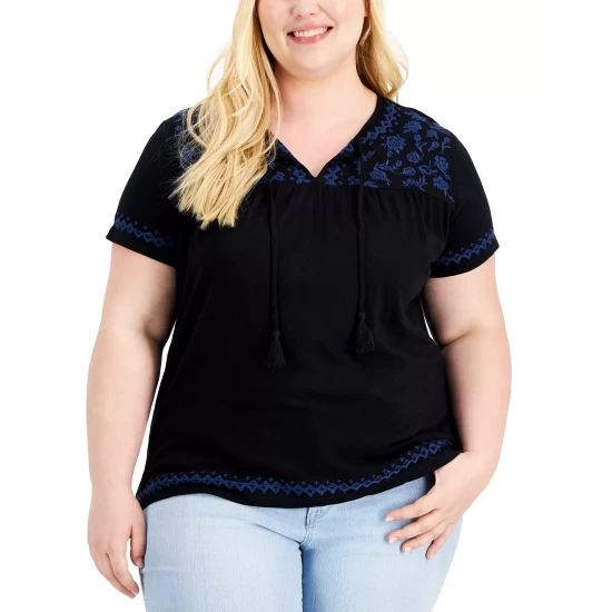 Getting ready is a breeze when you have this boho style on hand. Style & Co’s peasant top is the perfect mix of soft fabric and intricate embroidery.