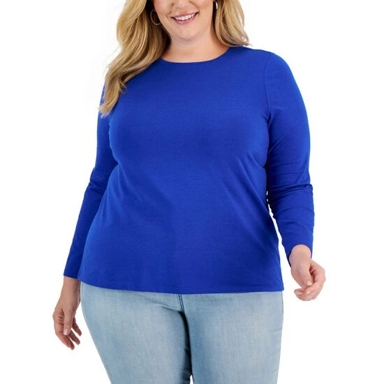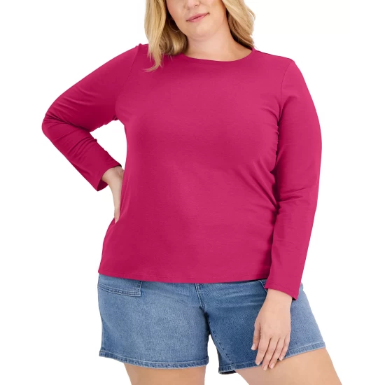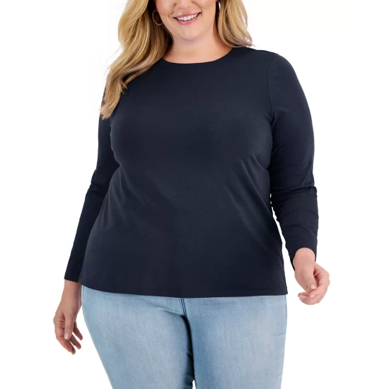 A perfect starting point for any casual outfit, Style & Co’s plus size T-shirt features sleek long sleeves and a solid hue.