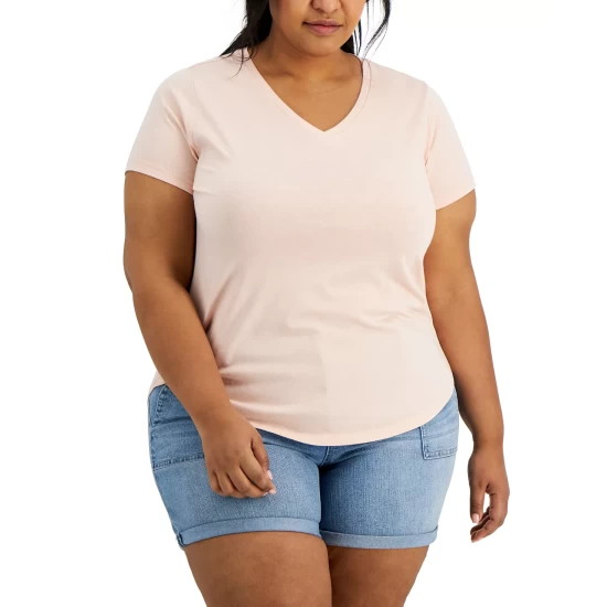 A flattering V-neck frames a versatile go-to look with this plus size burnout T-shirt from Style & Co.