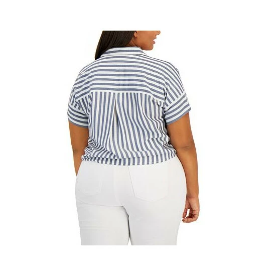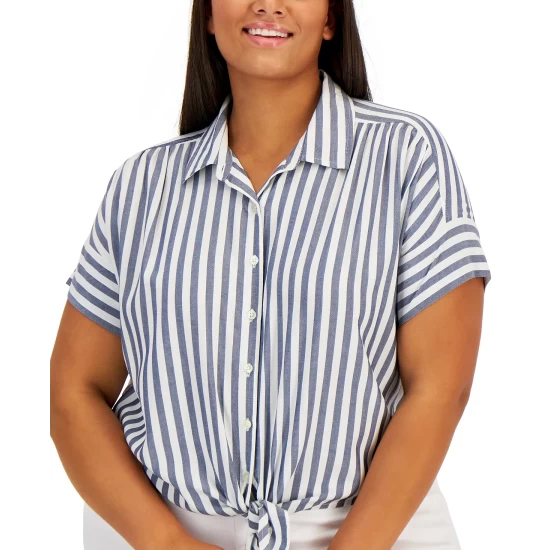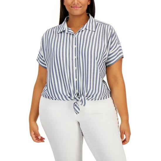 Striped for a timeless touch, this short-sleeve, plus size blouse from Style & Co looks great with all your favorite bottoms.