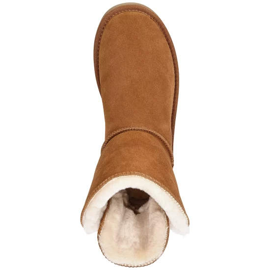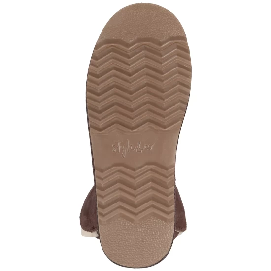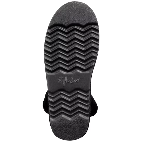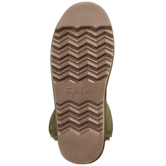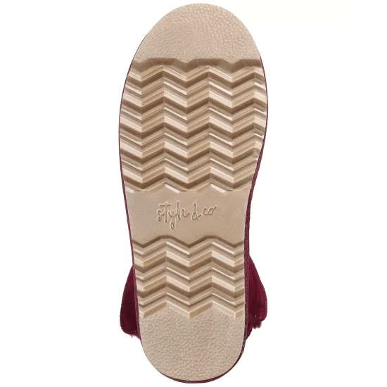 Style & Co’s Teenyy genuine suede booties add cozy comfort to a split-shaft profile with plush faux-fur linings and buckled strap at the back.
