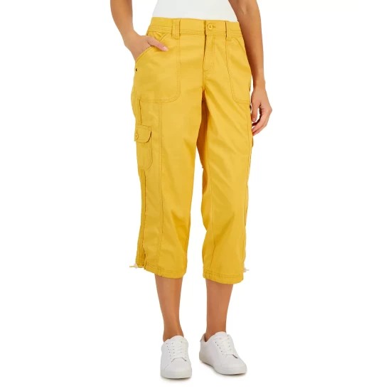 Style & Co lends added form and function to these cargo-inspired capri pants with plenty of pockets and bungee cords at each hem.