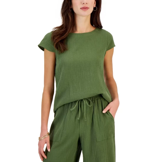 Texture is the name of the game with this cap-sleeve crinkled gauze top from Style & Co.