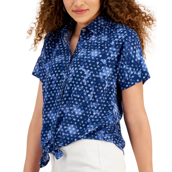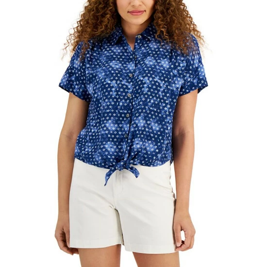 Wholesale 🎁 Style & Co πŸ‘© Women’s Dot-Print Tie-Front πŸ‘• Shirt, Created For Macy’s Dots Blue πŸŽ‰
