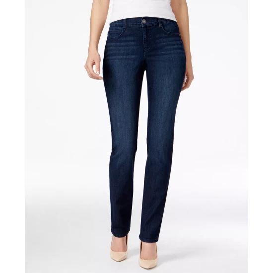 Look your slimmest in these Style & Co slim fit jeans, featuring a special tummy-smoothing panel at the front.