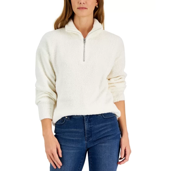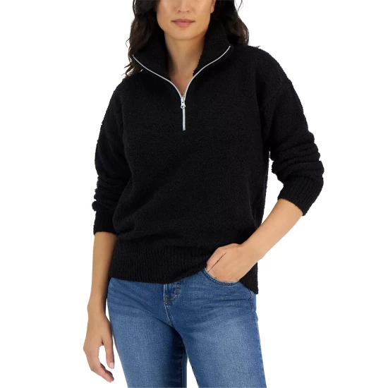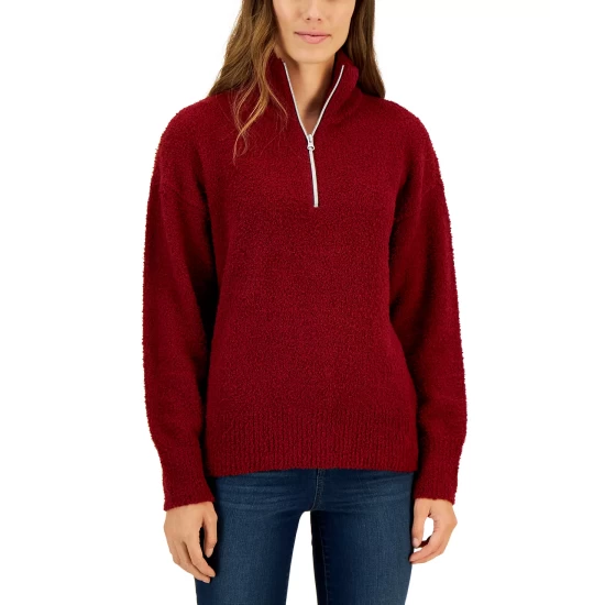 Convertible cozy. This Style & Co sweater features a mock neck and a quarter-zip closure that lets you change up the look and the warmth.