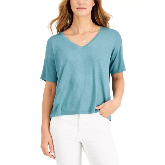 A cozy mock turtleneck tops off this soft long-sleeve sweater dress from Style & Co.