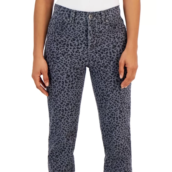 A chic cheetah print refreshes a pair of straight-leg jeans from Style & Co, designed with a slimming panel built in.