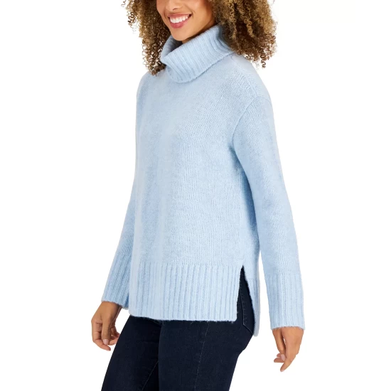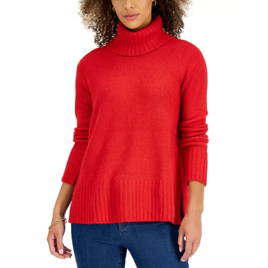 An essential classic that every woman needs, Style & Co’s ribbed turtleneck sweater blends cozy and chic for a perfect look.