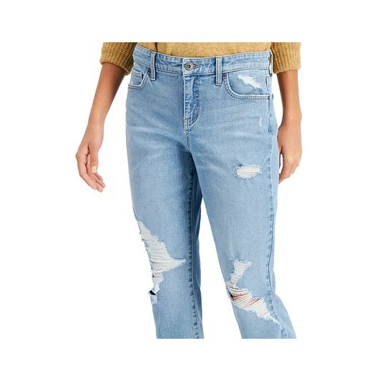 Turn your wardrobe up a notch with Style & Co’s destructed Girlfriend Jeans. The destructed detailing adds depth and edginess while the cuffed hem rounds out this look in style.