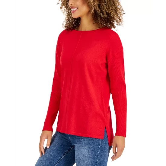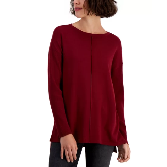 Effortlessly elegant with a boat neckline, this Style & Co sweater is finished with a distinctive seam down the front.